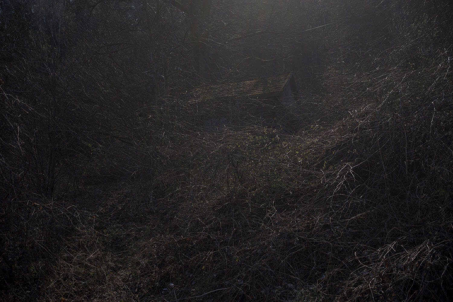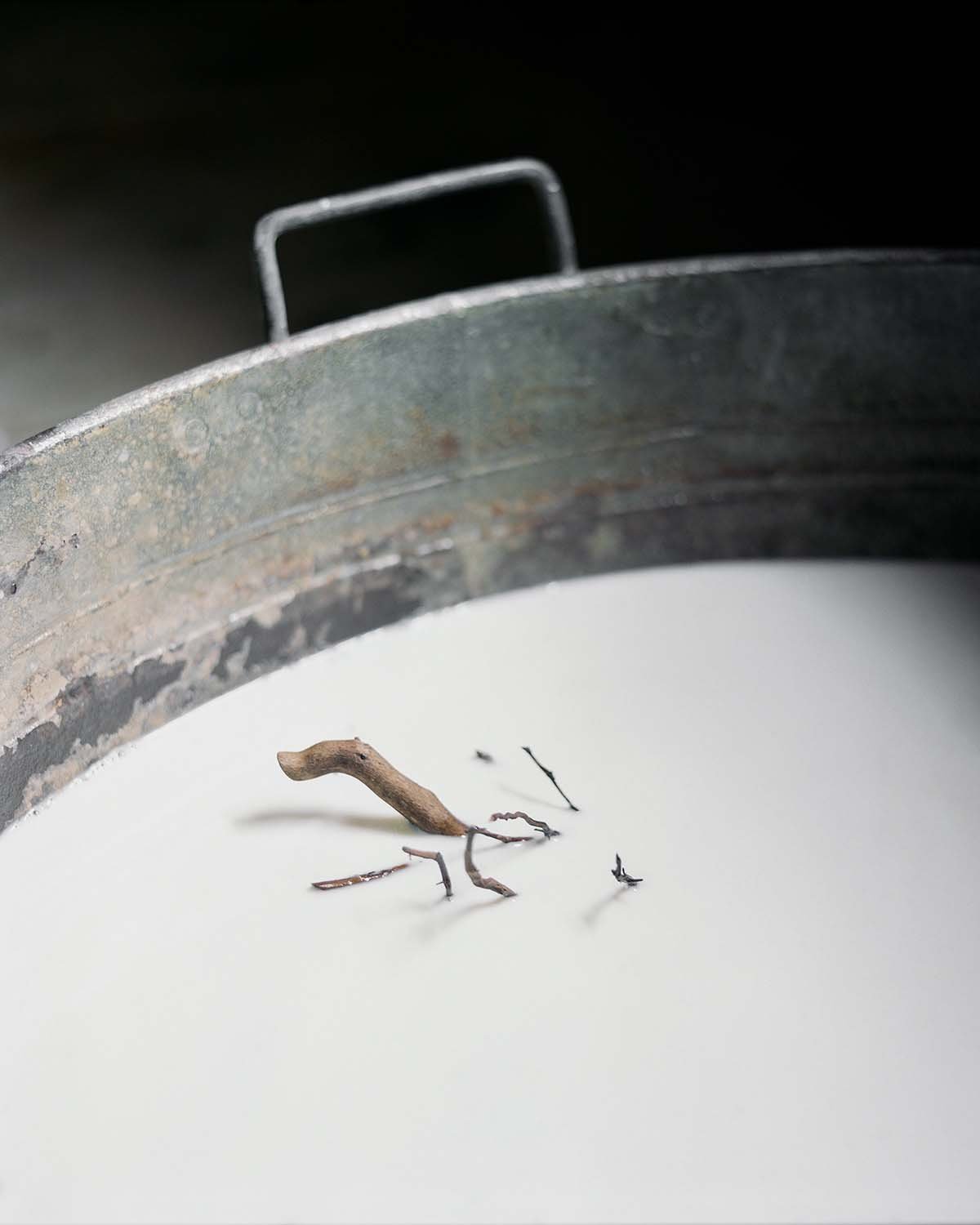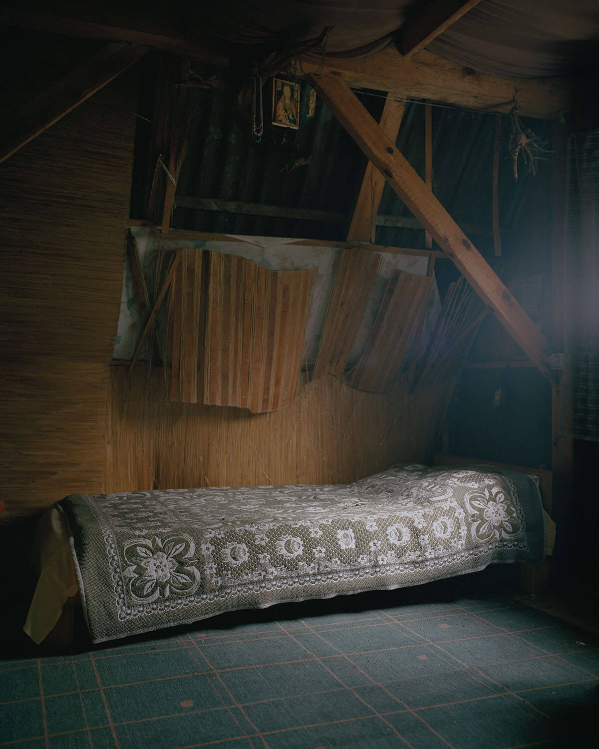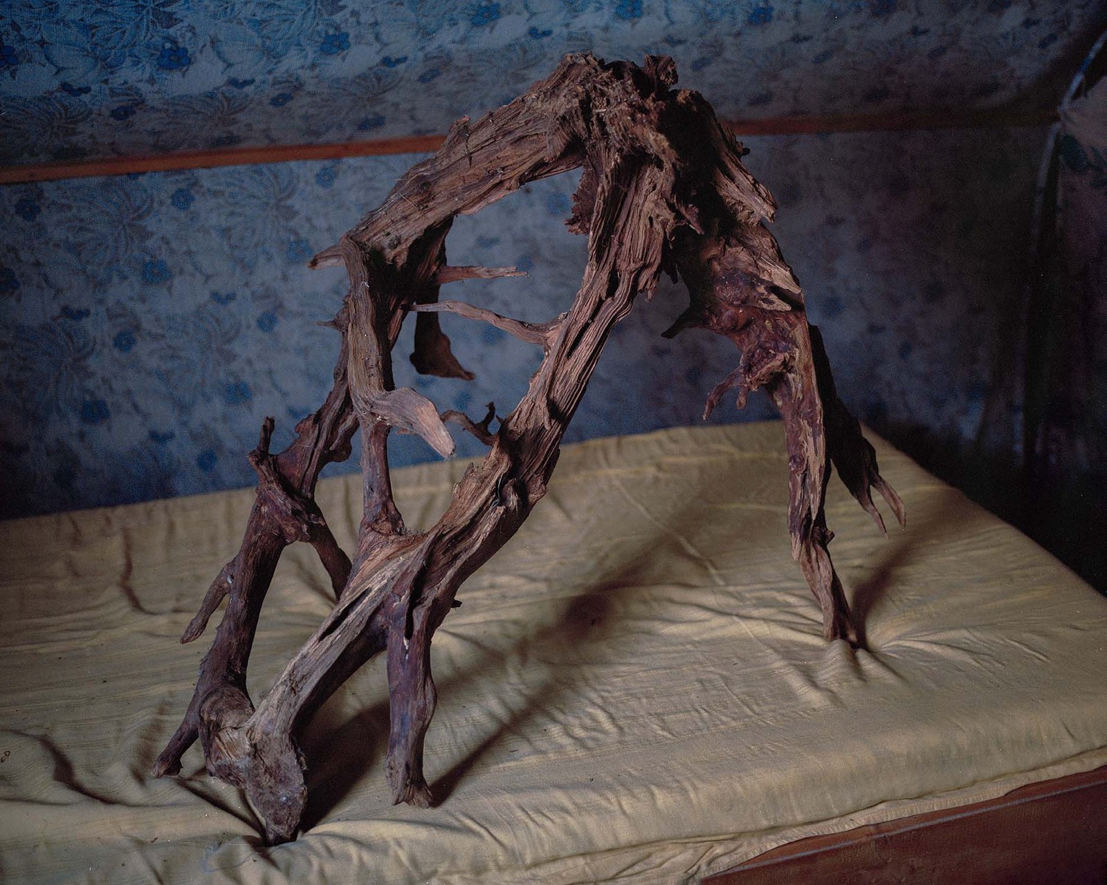 When I was a child, we slept in the attic. The walls allowed in the wind on which outdoor noises were borne. I imagined I was sleeping in a treehouse in the middle of the forest. The mountain wind that whistled around the room made me shiver, but I was never afraid. We were safe because we were protected by my grandmother’s enchanted amulets. Huge roots resembling animals, bunches of plants, and pebbles arranged on the clay of the old stove watched over us. They reconciled the home with the dark forest.