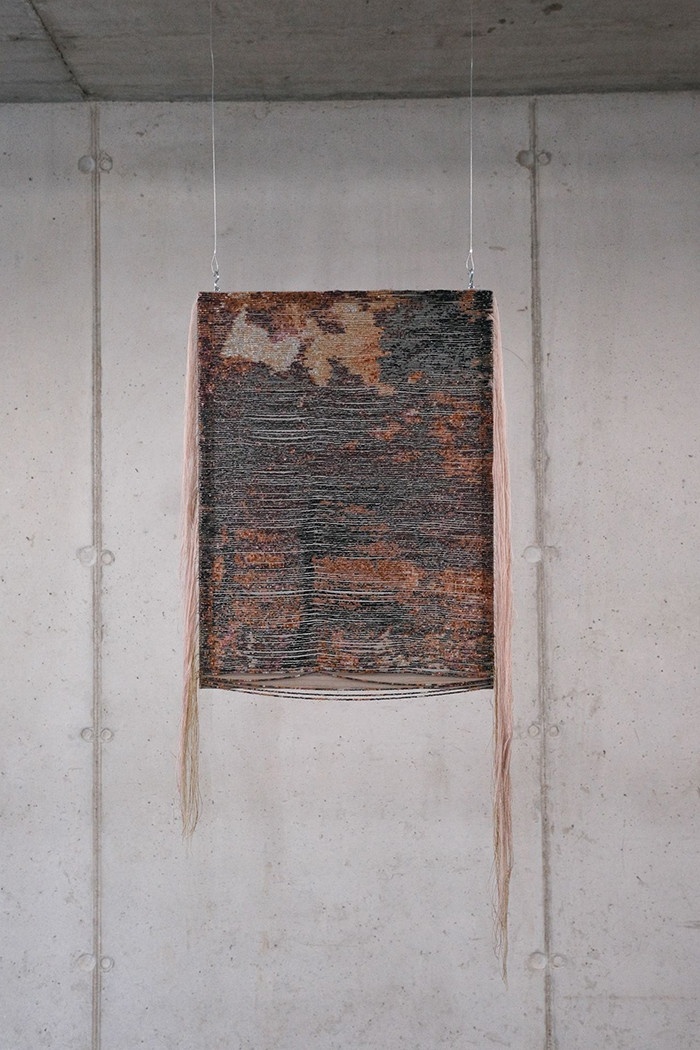 Here, the artist welcomes “glitches” – visual defects – as a fertile element. Each time, she starts her work with a precise grid, but as she embroiders, her focus wavers and her intuition takes over. The threads trace the flow of time – that of the weaving’s own movement as well as that of the captured moment. The embroidery work becomes both a tool and a meditation on the fragmentation of the image, of memory and of meaning.