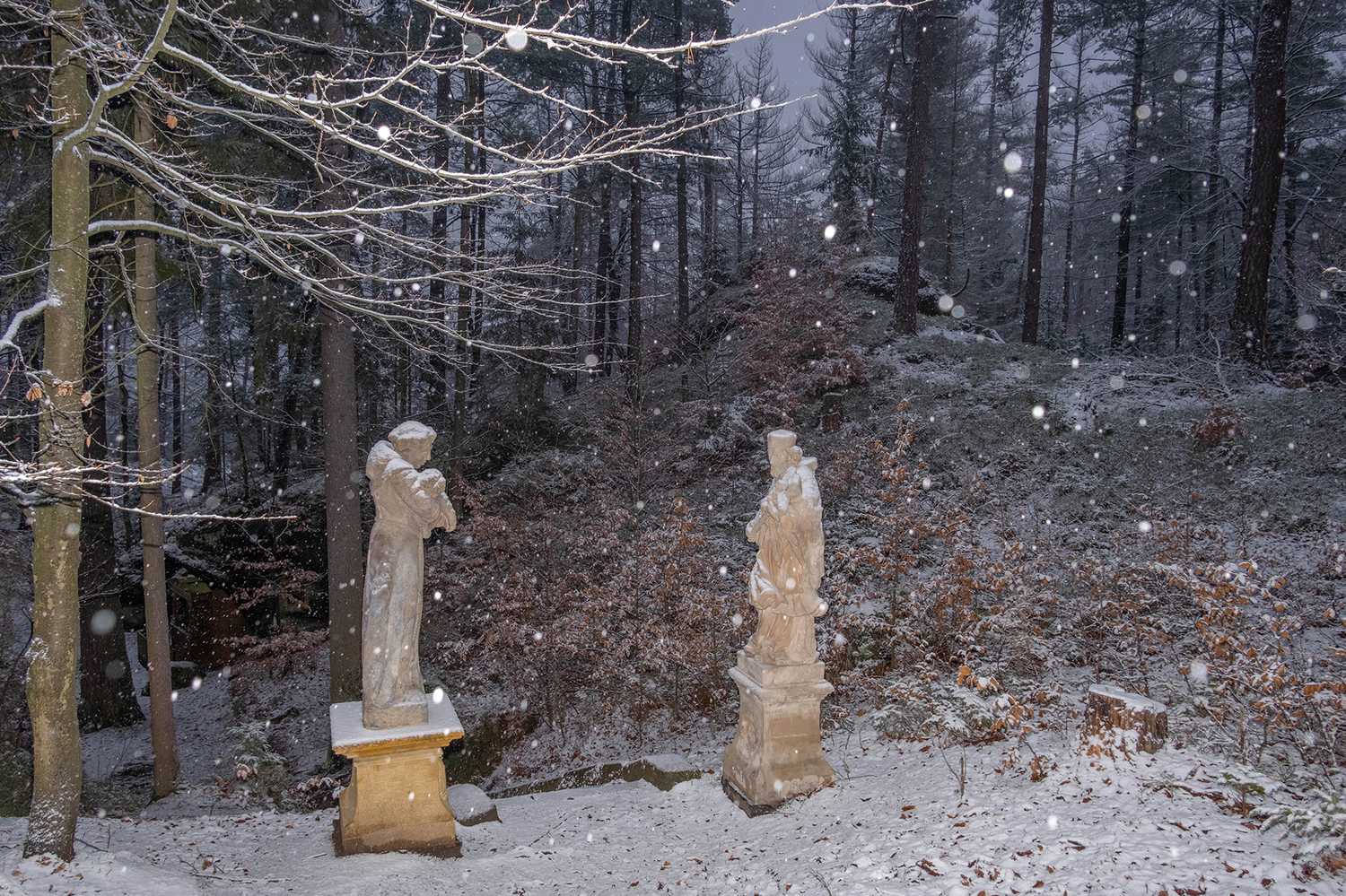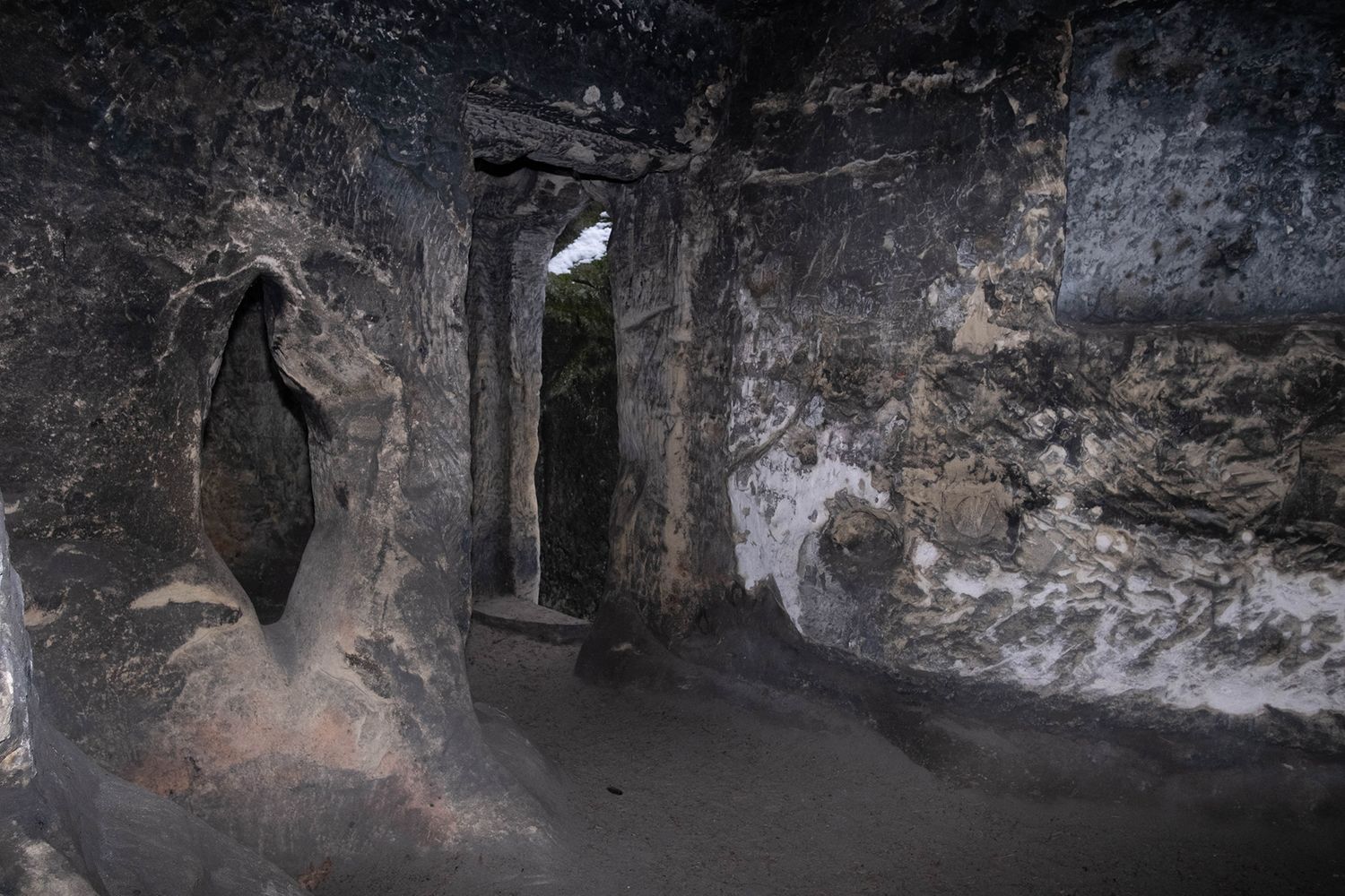 Alžběta Drcmánková explores the contemporary need to escape from the modern world to take refuge in archetypal landscapes, matrix spaces that recall the refuge of the cave and the desire to reconnect with nature and the cycle of time.