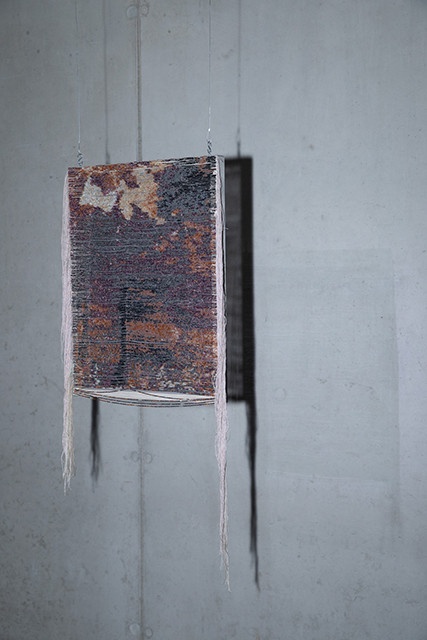 She reinterprets digital imagery with embroideries that she makes with seed beads. Through this rigorous and repetitive process, the image comes apart bead by bead to eventually disintegrate. Yet, each piece becomes a tactile extension of the photograph.