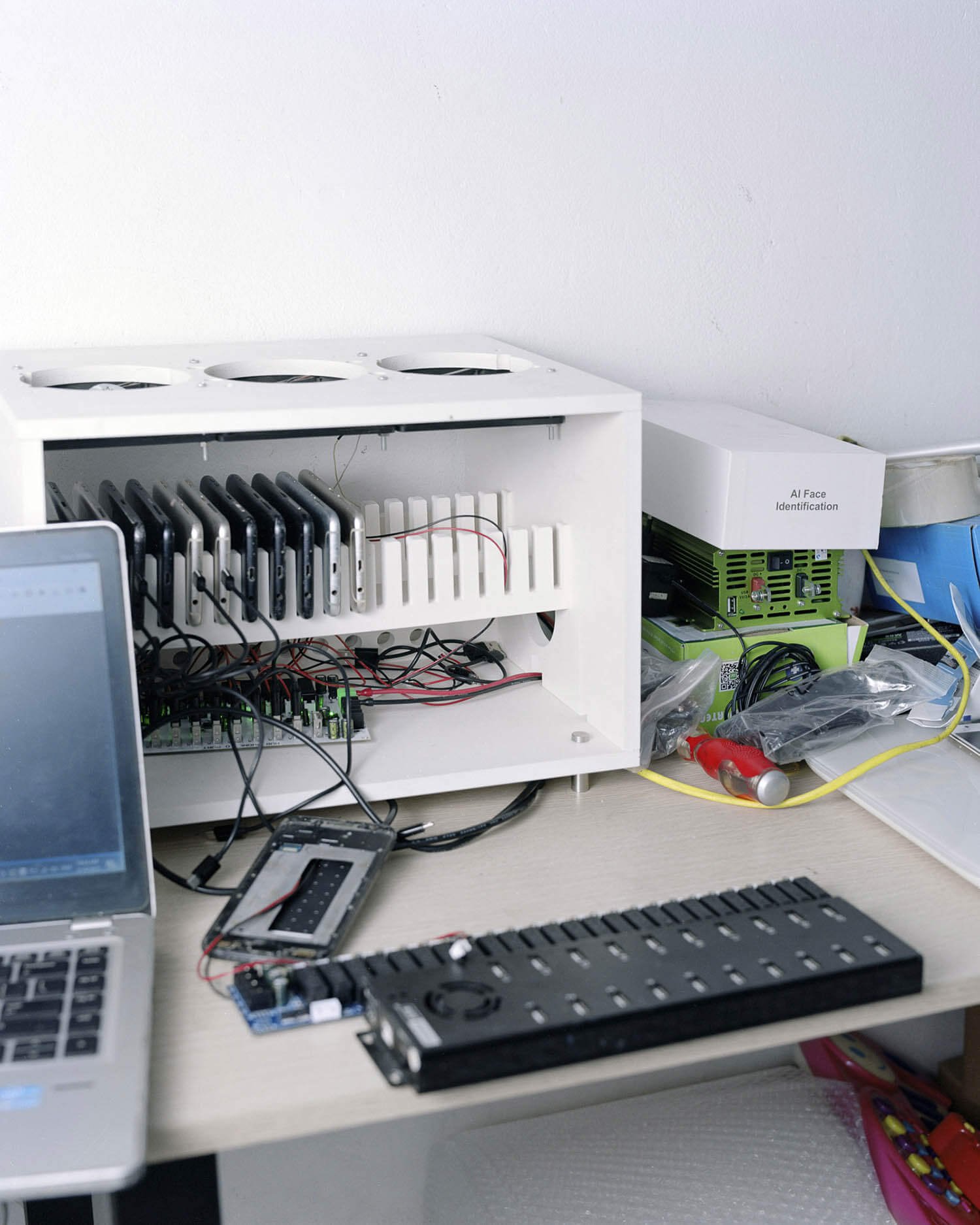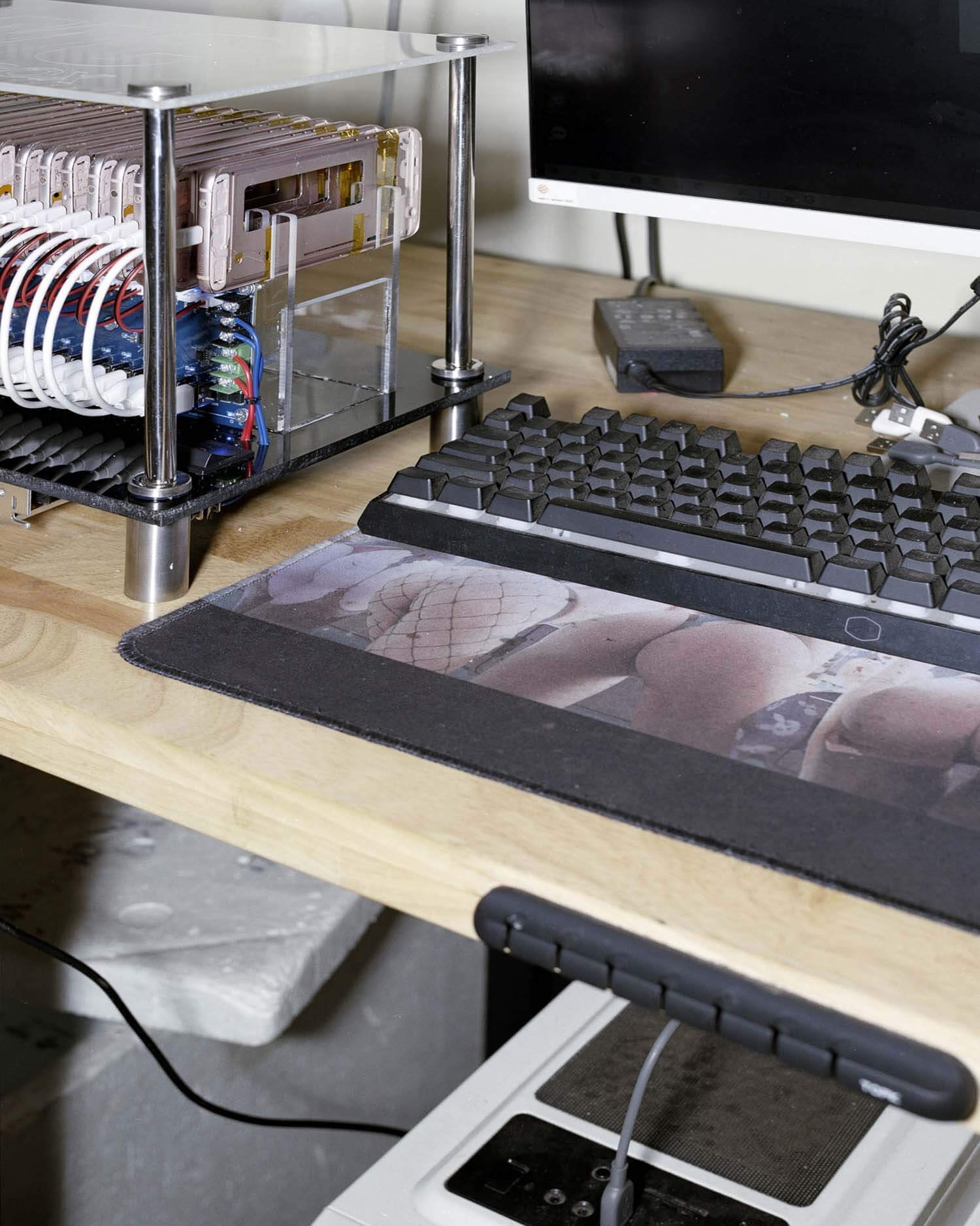 Jack Latham’s project seeks to expose the inner workings of click farms for the first time. By juxtaposing the captivating with the covert – images gleaned from TikTok, Instagram and Facebook alongside photographs of click farms in Vietnam and Hong Kong – he challenges our perception of the digital landscape and urges us to question the authenticity of the content we encounter daily.