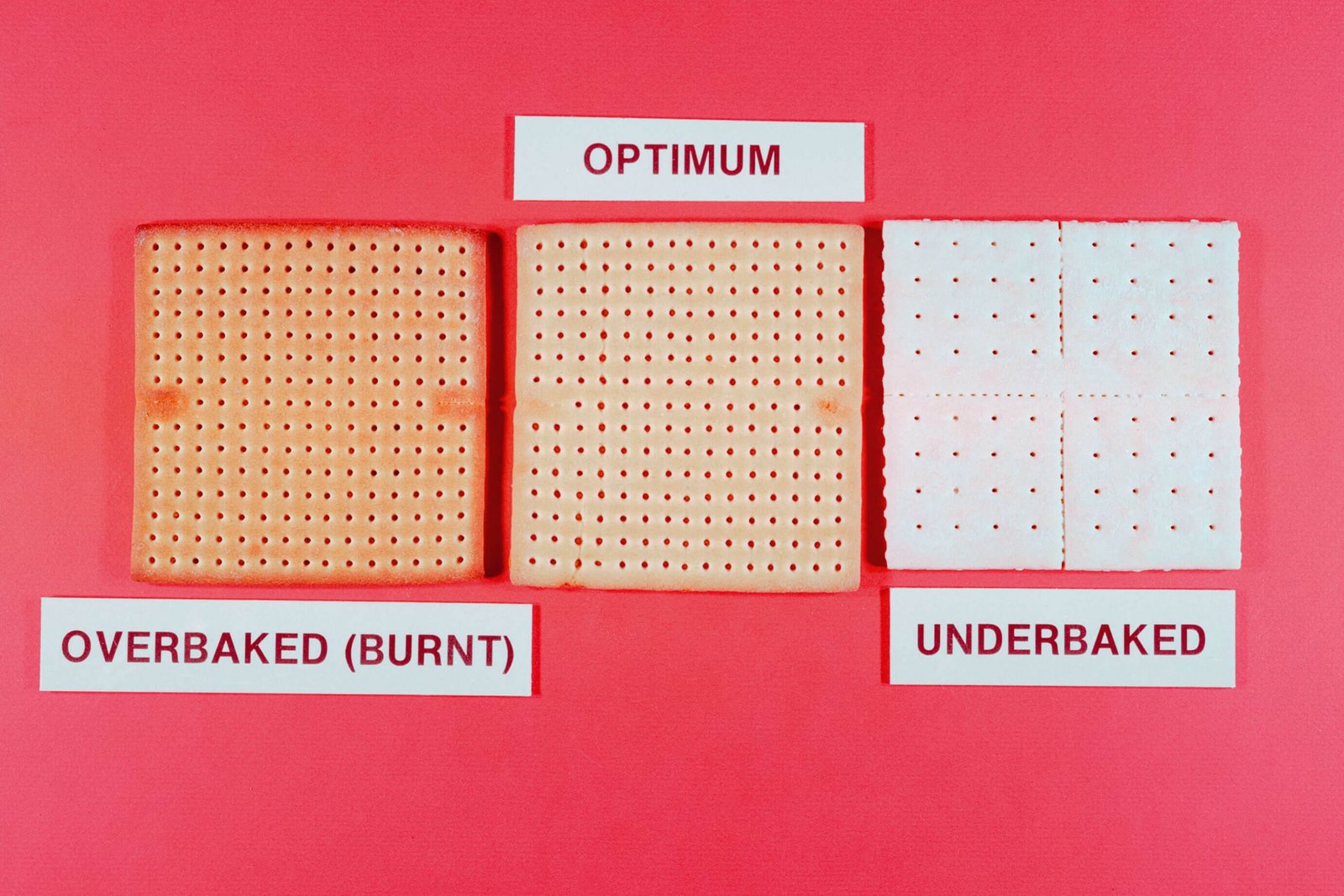 Overbaked (burnt), optimum, underbaked, 1987