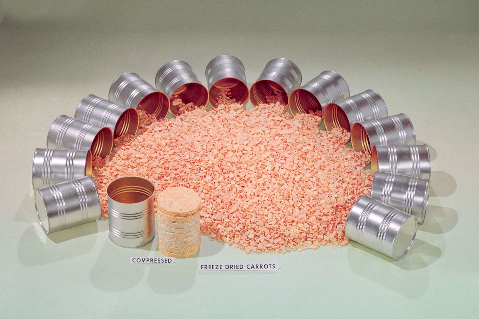 Freeze-dried carrots, compressed, 1969