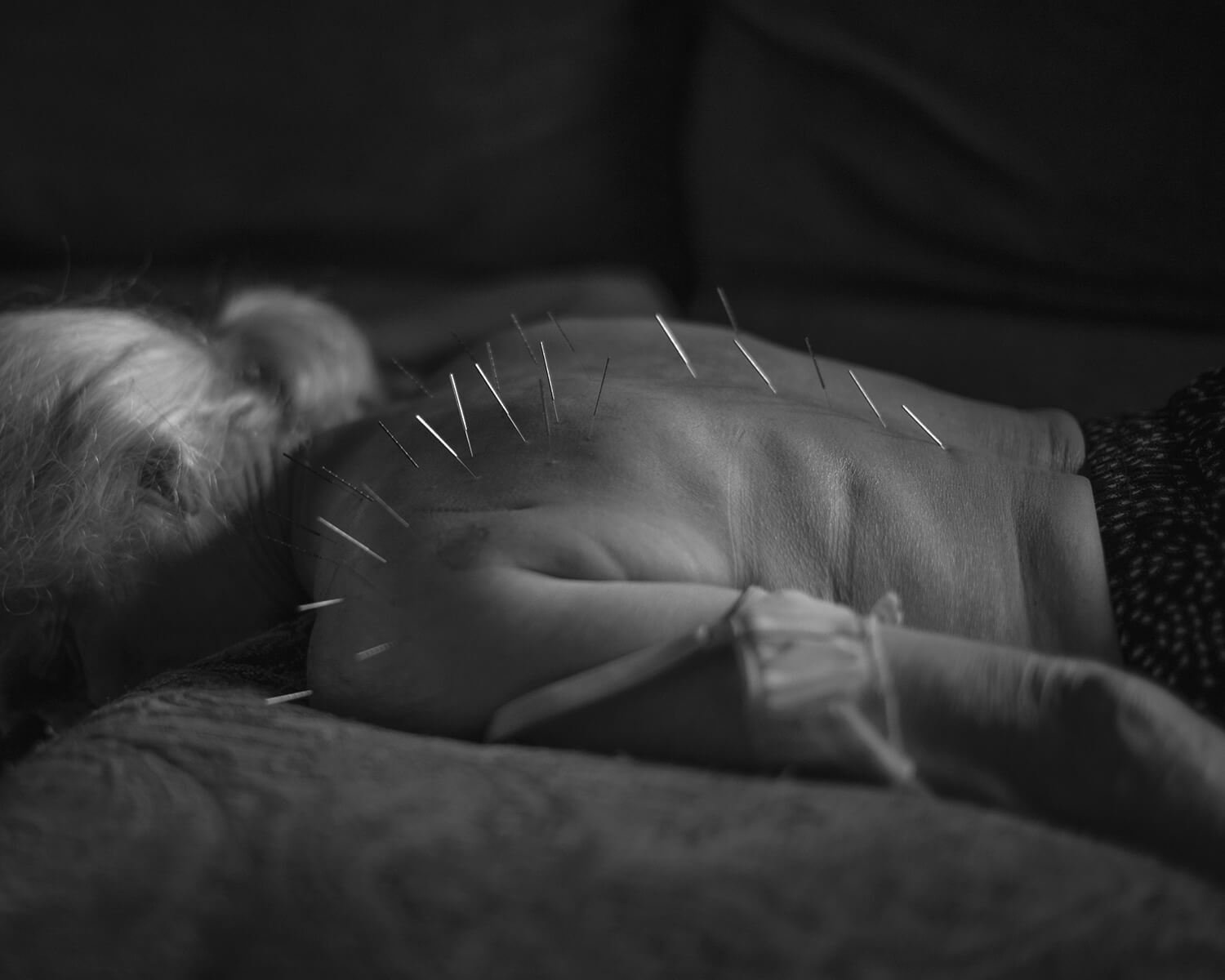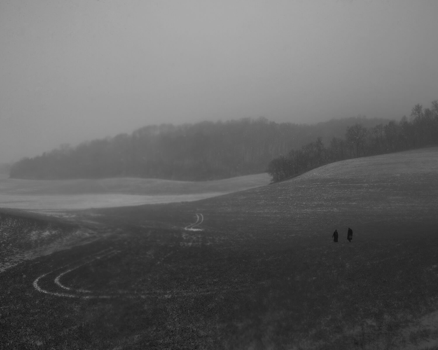 Created with her family and strangers, the resulting series depicts the contrasts of the modern midwest where everyday occurrences get caught between past and present. Her portrayals of isolation and connection explore interior and exterior landscapes in a region that is mysterious yet familiar.
