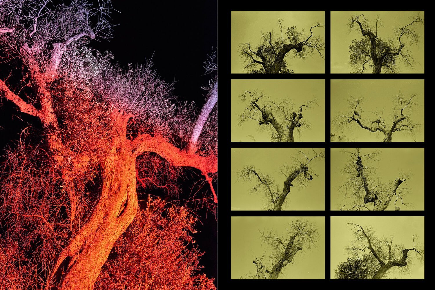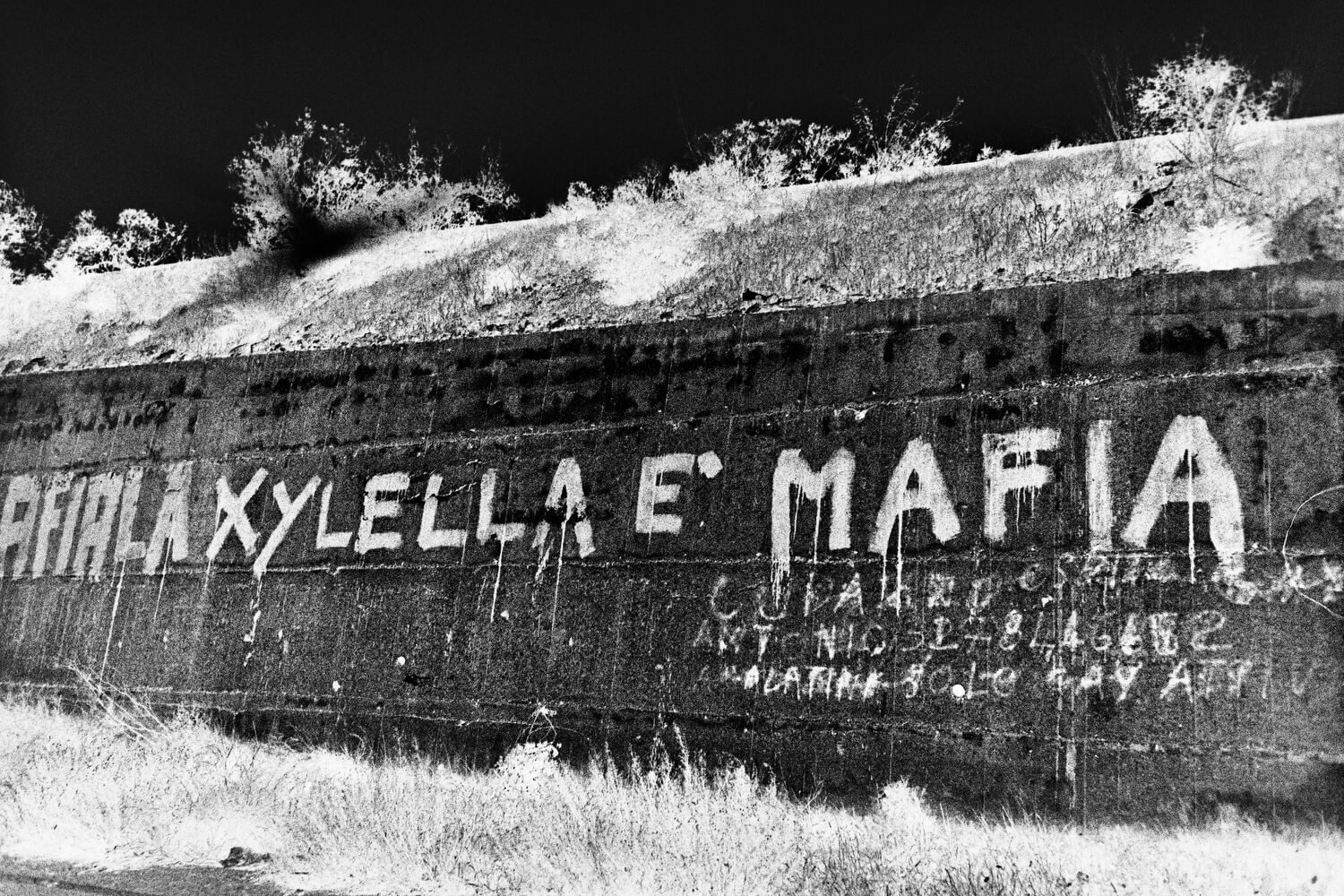 Working under the project title “This Land Is My Land”, we came up with “Fastidiosa”, that is now published as a book by Overlapse. Conducted with a multi-layered visual and content approach, it includes analogue black and white portraits, landscapes, details, along with colour images highlighting scientific research and experimental efforts, archival photographs and words from residents of the region.