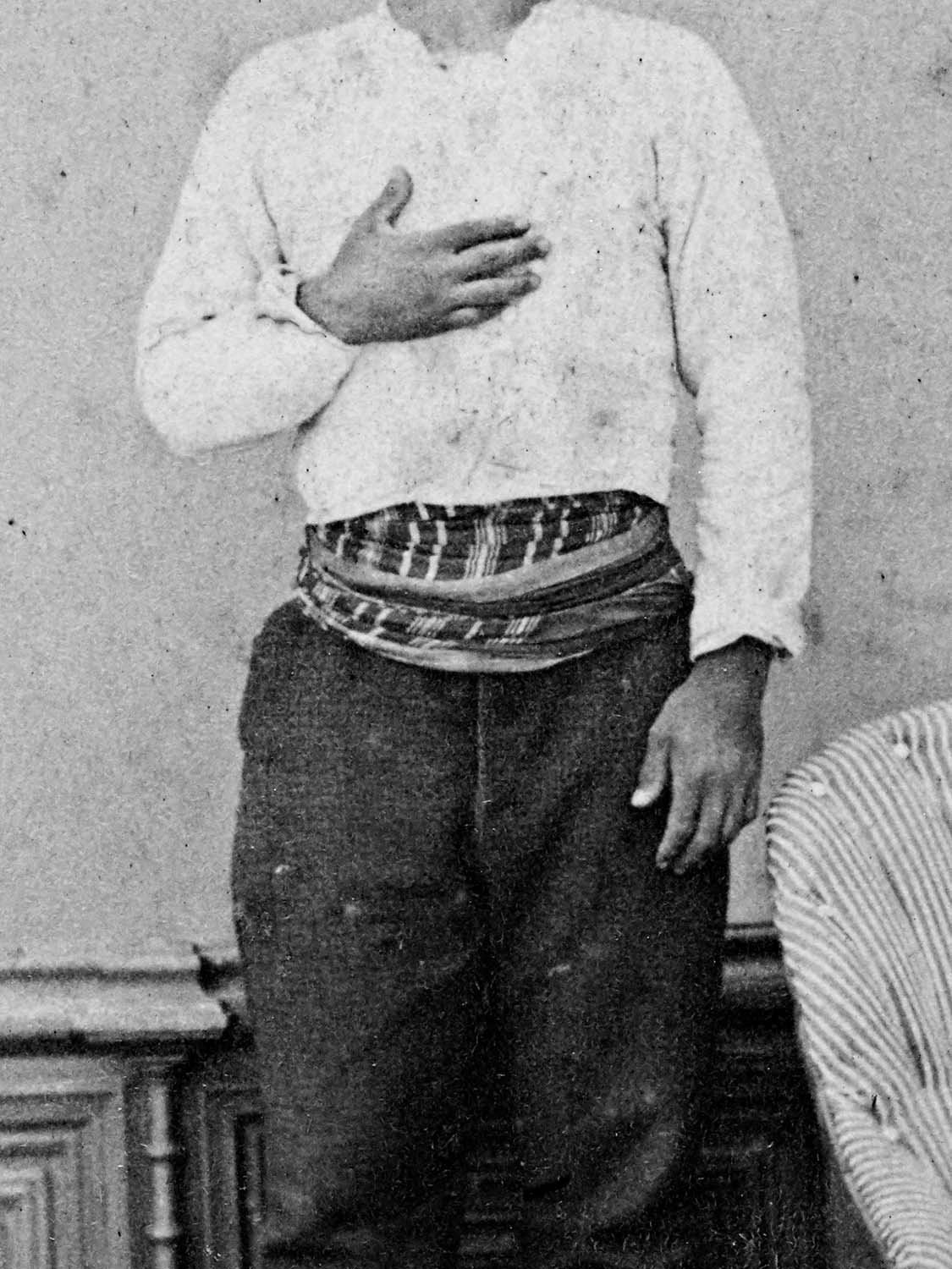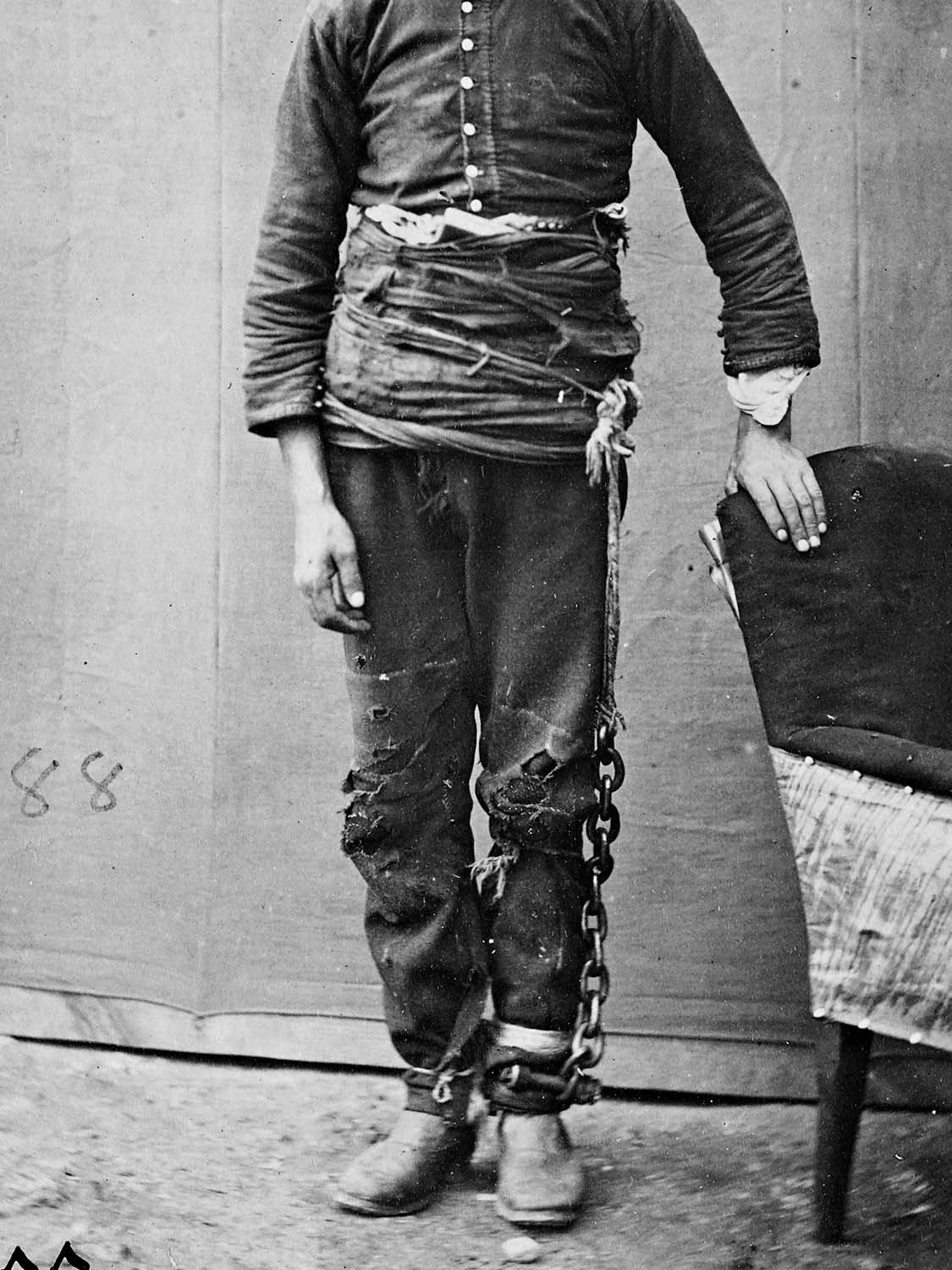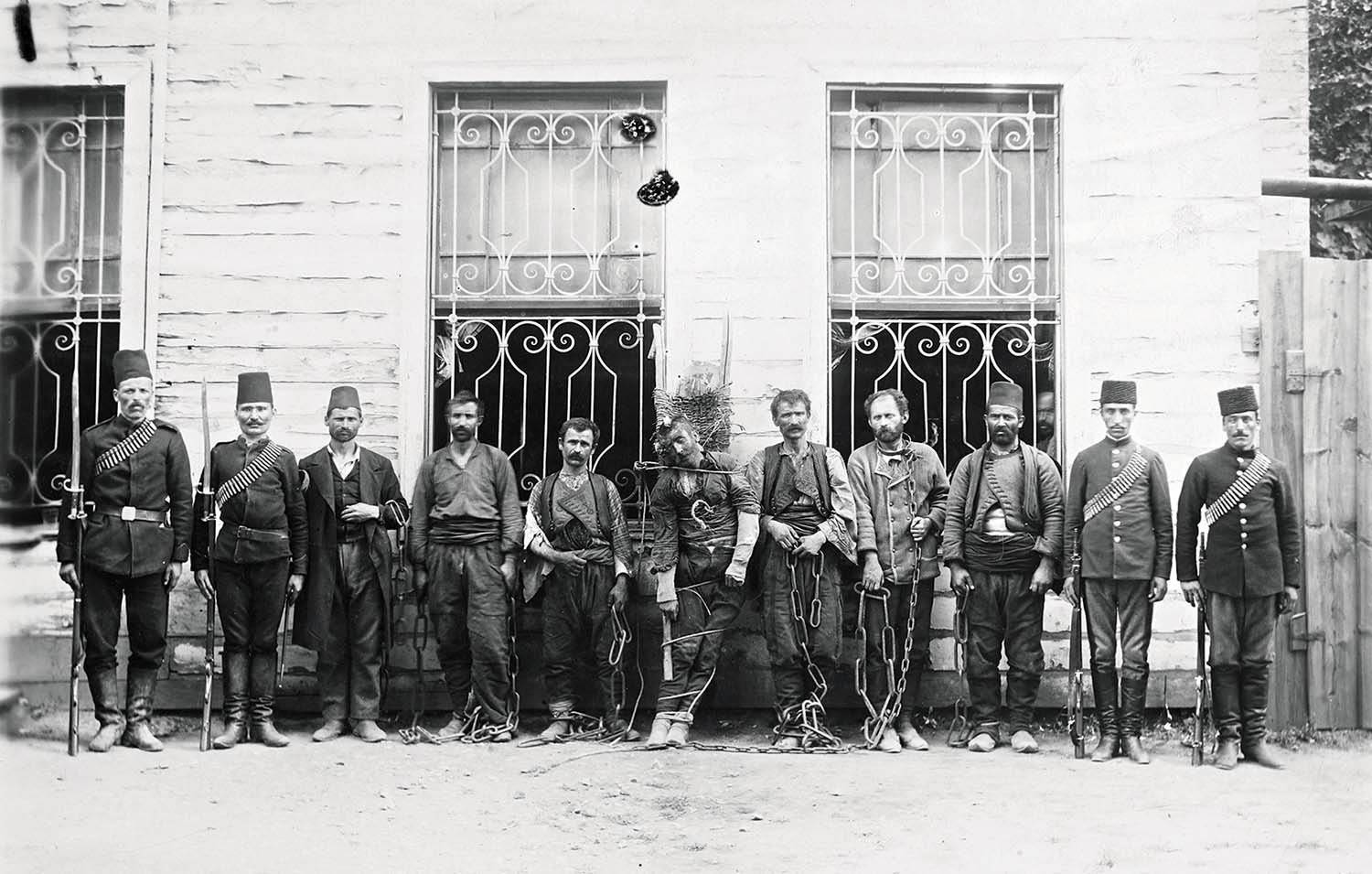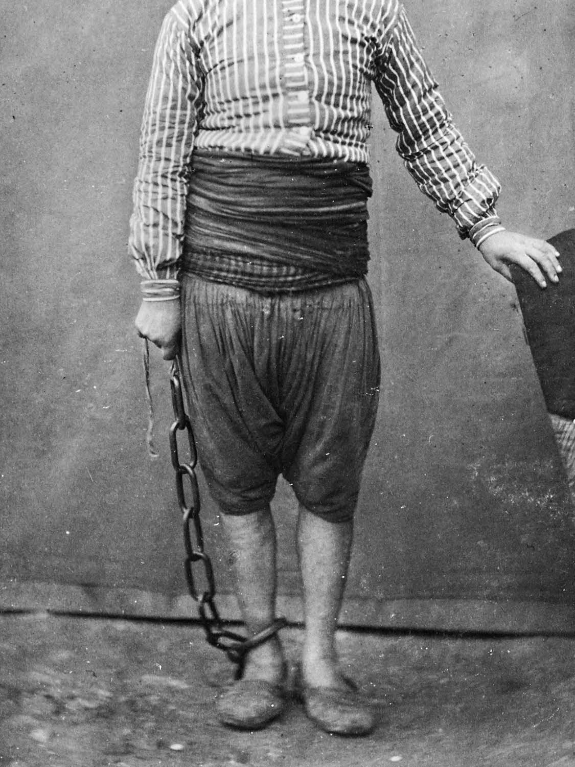 Among Abdulhamid’s many interests were crime fiction novels. Abdulhamid II during the 25th year of his reign, ordered all murder convicts in the country to be photographed with their hands showing, in preparation for a planned amnesty. He has been moved by pseudo-scientific information he had read in a crime novel that “any criminal with a thumb joint longer than the index finger joint, is inclined to murder.” To this end, the photographs in the first wall (Hayal) show the subjects’ hands for the purpose of classification. Whereas in the second wall (Hakikat), we see chained prisoners who are all sentenced to death —having nothing to do with the amnesty in question.