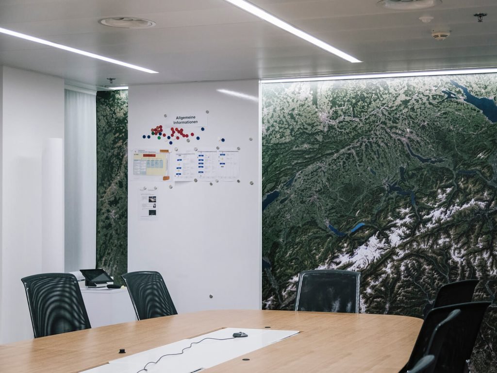 Switzerland is well-known as one of the safest countries on earth and as a prime example of efficiency and efficacy. But how do state and private actors ensure this valuable com-modity, which is as much a basic need as it is a billion-dollar business? And how much freedom are we as citizens willing to give up for our security? Between 2014 and 2018, Salvatore Vitale (born 1986 in Palermo, lives in Lugano and Zurich) set out on a visual research project, to discover the central underlying tenets for such a country to evolve, exist and endure. One of the central conditions he made out is the development of a culture based on securing, protecting, insuring and preventing, which is supported by the presence and production of national security. In order to do this, Vitale investigated the social and technological mechanisms underlying this preventive and defensive shield and takes a close look at the various institutio- nal protagonists involved — police, military, customs and migration authorities, weather services, IT companies, and research institu- tions for robotics and artificial intelligence. He proposes to find these mechanisms in sets of embodied and often internalized individual and collective routines and practices, which support the production of systemic state-wide national security. The project is for example interested in exploring and visualizing questions like: Why do the Swiss armed forces worry about the annual worry barometer? How does integrated border management work? What does the Réduit have to do with bitcoin and cyber-security? Or what is predictive policing? It positions itself as a critical artistic contribution to debates in a society that is confronted with growing threats — real or perceived — from terrorism and cybercrime, sur-veillance and data misuse. It also inscribes itself into current Swiss political debates on Swiss arms exports and citizen privacy.