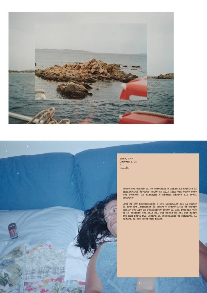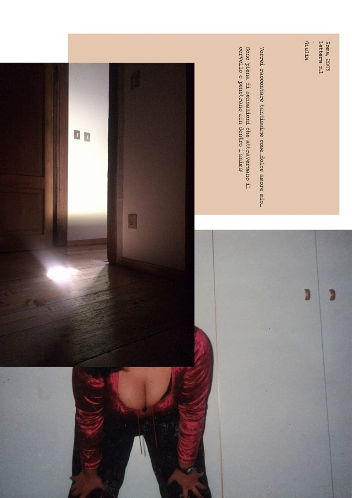 ‘It was summer and as many children I spent my days in a summer camp. One night I came home very excited and after having dinner with my grandmother I went upstairs, where my mother and I lived, with the intention of going to sleep. As I entered I saw my mother and a man sitting on the couch watching television. My mother asked me how my day was and I couldn’t stop myself to show both of them what I had learned. I started dancing and singing in front of the television for about 10 minutes, until the man interrupted my performance by saying “It’s late, I’d better go.”, followed by my mother’s withering gaze towards me. Once greeted the man, my mother came back in the house yelling at me: “How could you possibly make them all run away?”.’ (Martina Zanin) I Made Them Run Away is a multi-layered story weaving together family images and photographs with texts written by the artist’s mother. It brings together memories from the past and feelings of the present to investigate the dynamics of relationships – the need for attention, the expectations that cause disillusionment, insecurity and judgment. Central themes include love, fantasy, illusion, and identity. Shifting between the different points of view, Zanin depicts the recurring complicated triangle relationship between she, her mother and the “man”, not constant, mostly represented as an absence in the work. Fantasizing about a man she was never able to have, the artist’s mother wrote her thoughts and desires in a diary entitled Letters to a Man I Have Never Had. The poetical and wistful writing, clash with the torn family images, of which her mother has preserved only her figure, or the one of the daughter, tearing off all her ex-boyfriends, creating objects saturated with anger and loneliness. Every other picture is the artist’s inner reconstruction and expression of past feelings and sensations that become apparent in the present. I Made Them Run Away is a dialogue between a mother and a daughter in two different moments in time, exploring the transition of feelings within a relationship, such as compassion and anger, love and hate, and the influence of past, which plays a fundamental role in present and future relations.