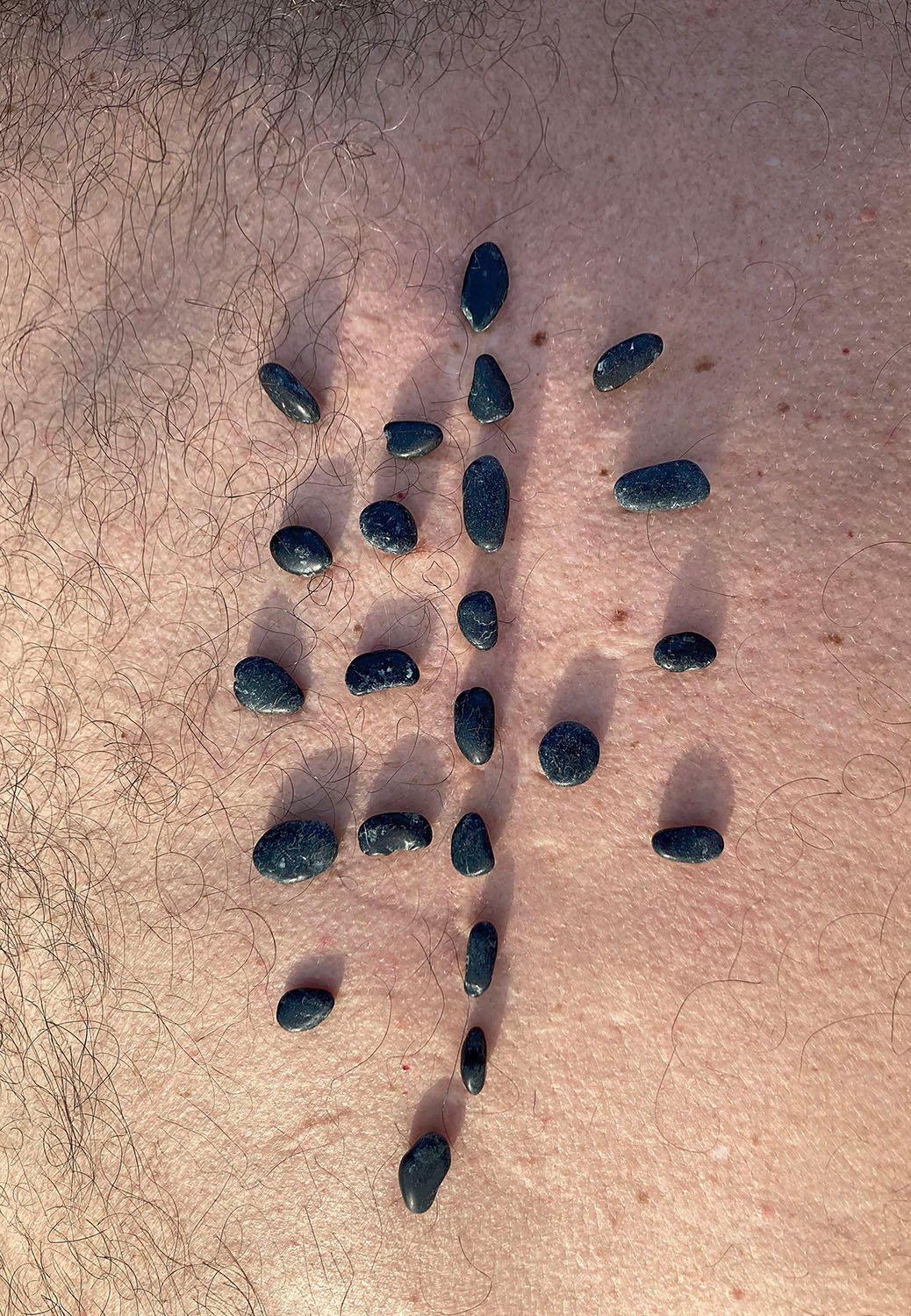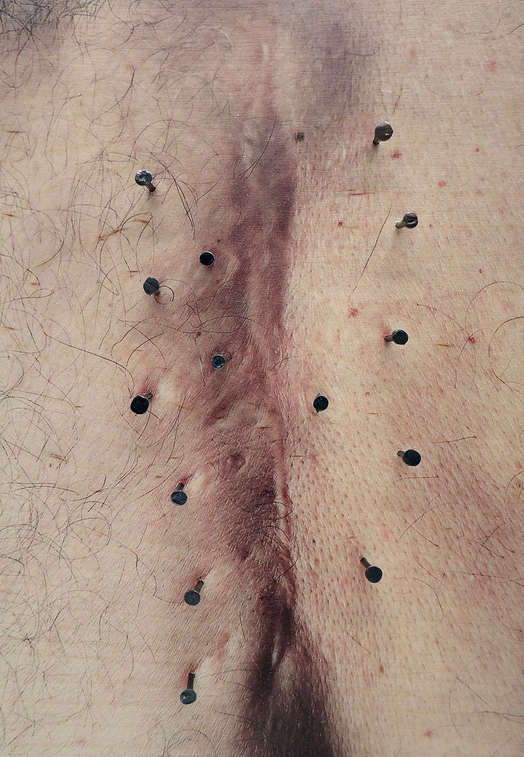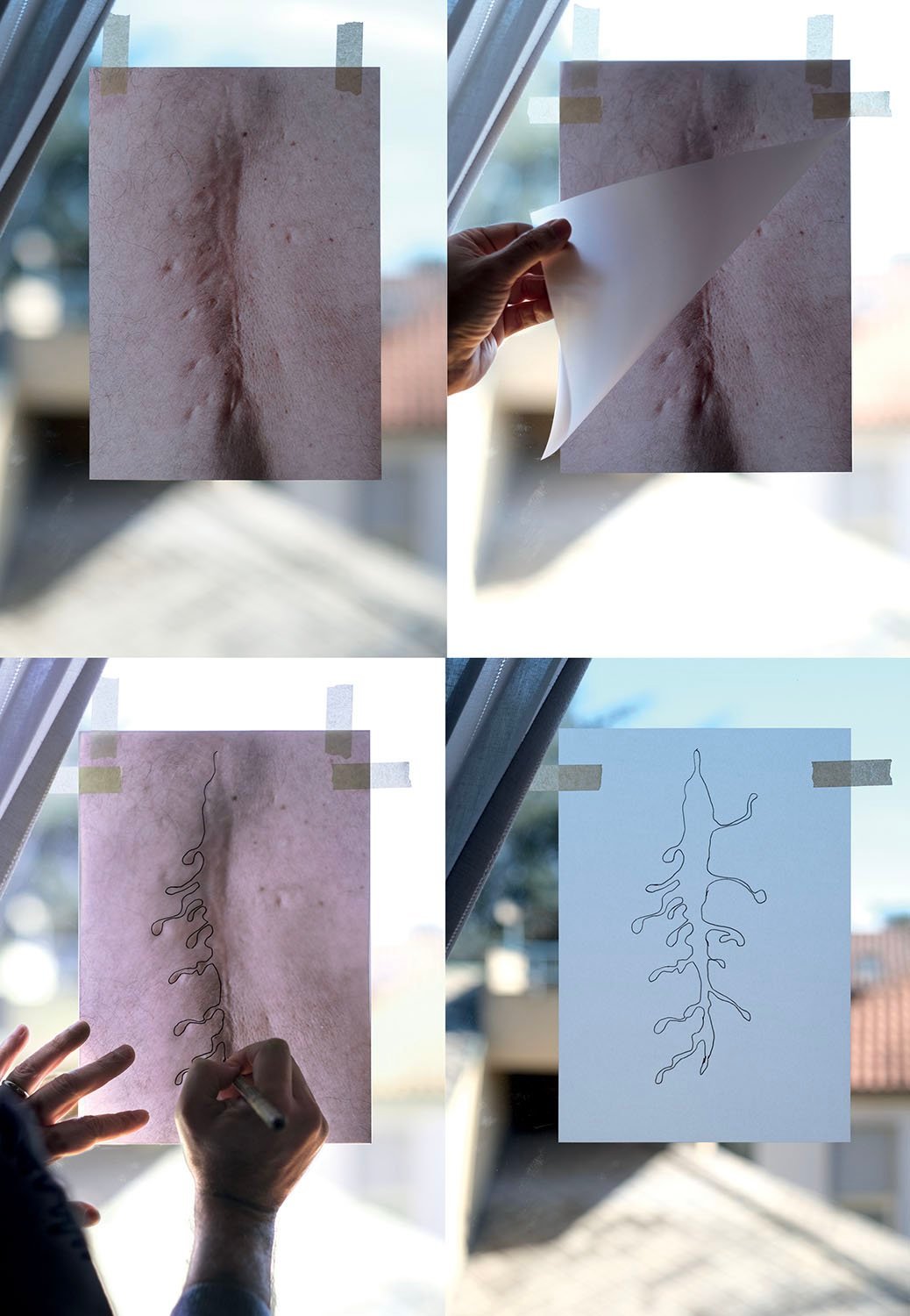 “Ignari totius corporis” develops the body’s unconscious memories theme, illustrating a method to plunge into those abysses and come out safe. The project, conceived as a travel diary and an instruction manual, collects the images of the objects produced starting from the photograph of a scar on the back, the physical memory of an operation undergone in childhood. That first trace on the flesh, mirrored by the photographic trace and then elaborated as a figure, as a sign, as a “logo”, becomes the occasion for a journey that produces new images at each stage, in a potentially infinite game of concatenation and proliferation.