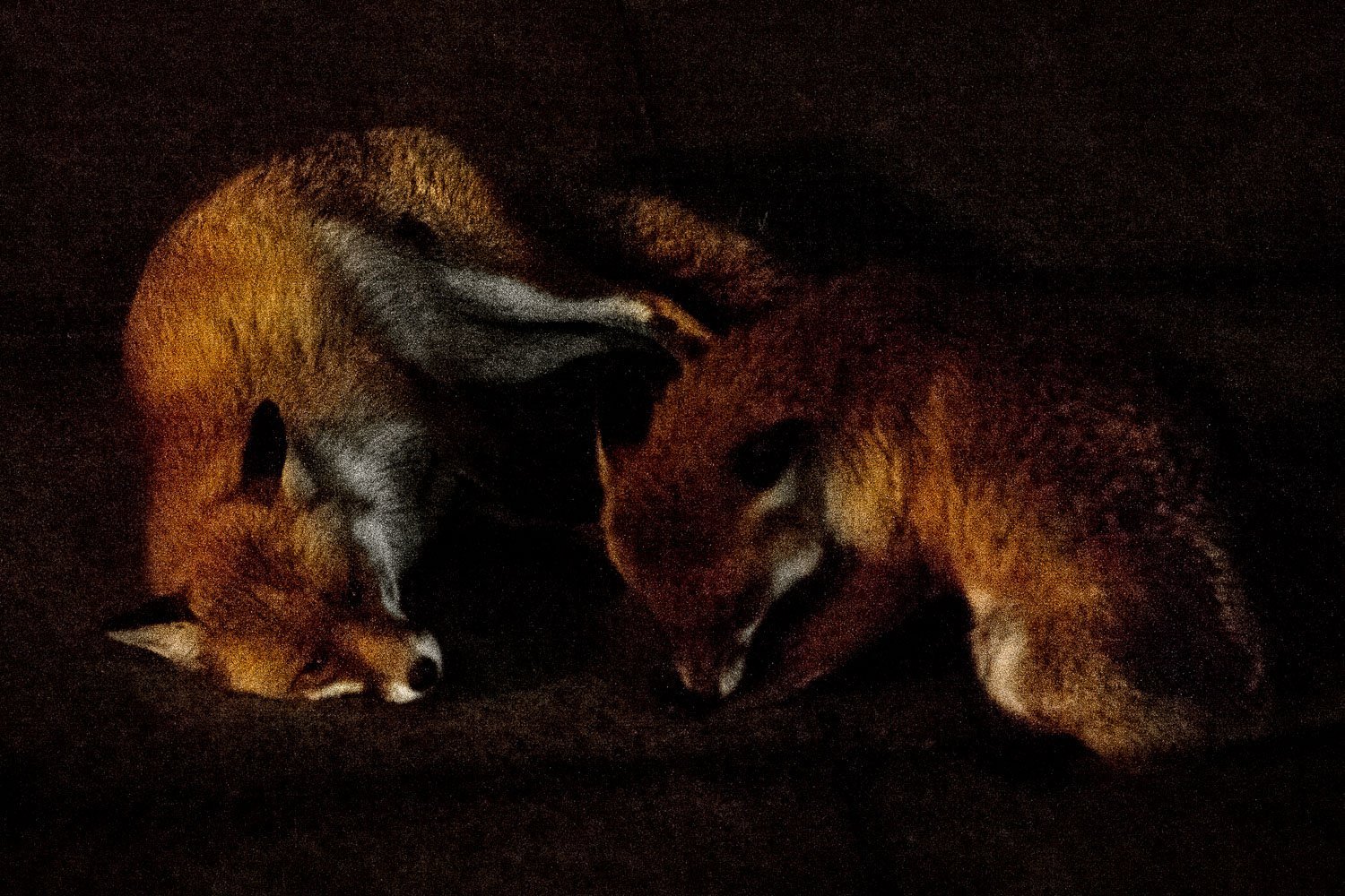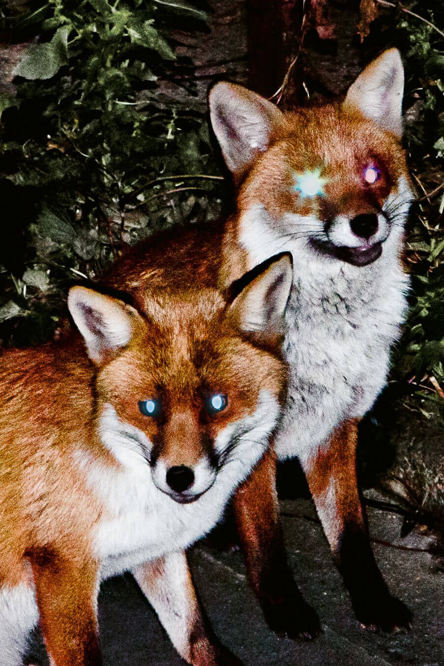 Over a period of 5 years, whilst living in Tower Hamlets, Spanish artist Carlos Alba documented the daily life of a family of local Red foxes (Vulpes vulpes). In the borough of Tower Hamlets, 43% of children live in poverty—the highest rate in London—yet his neighborhood is surrounded by two of the most important financial areas in the world: The City of London and Canary Wharf.