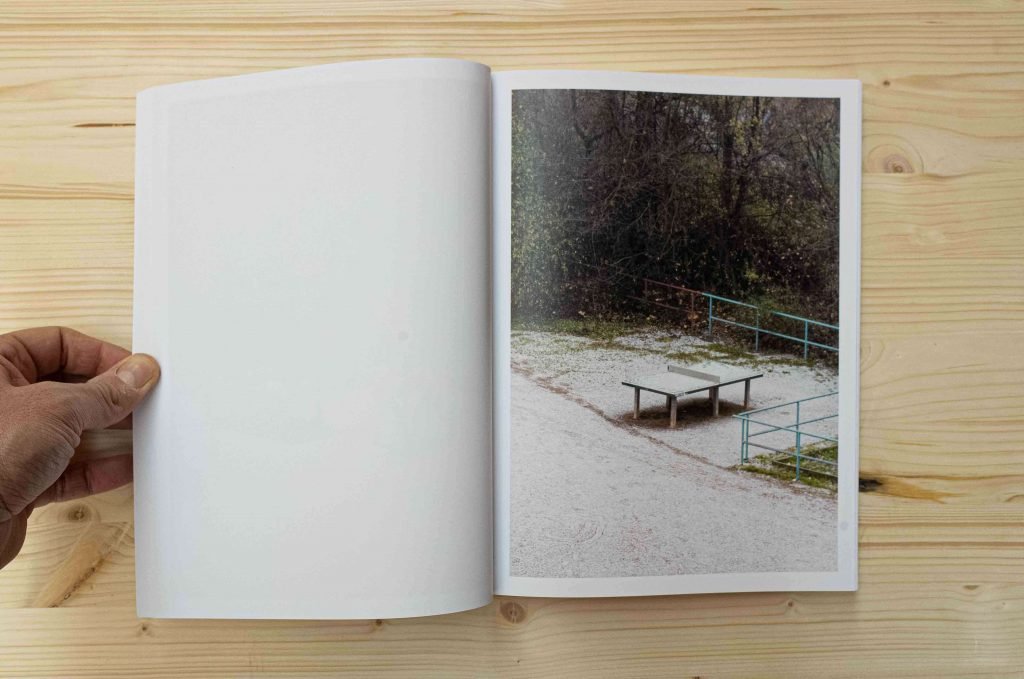 Tomiyasu, a winking spy, accompanies us with consumed awareness, creating, in the absence of the ping pong table, an unexpected cyclicity in the body of the book, thus probably responding to the urge to create a closure, to imprison the temporal flow in a spiral: an attempt which is probably futile, but not so different from Sugimoto’s series, in which circularity is consumed in every single image, which is in itself both the beginning and the end, as if wanting to harness the passage of time, in an attempt to grasp its essence.