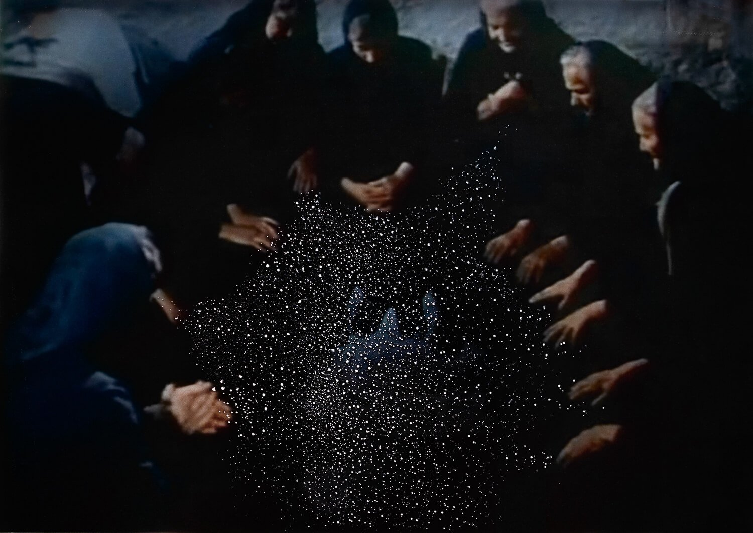 The result of the diffusion of these works generated the belief of a backward culture, dominated by irrationality and religion. The images extrapolated from these archives produced by photographers and videomakers belonging to the “scientific expeditions” of the past constitute the first part of my research. To rehabilitate the magical ritual present in the photographed practices but absent in the images created by photographers, I decided to intervene on the images using photographic techniques such as digital and analogue manipulation, painting of negatives or photo perforation.