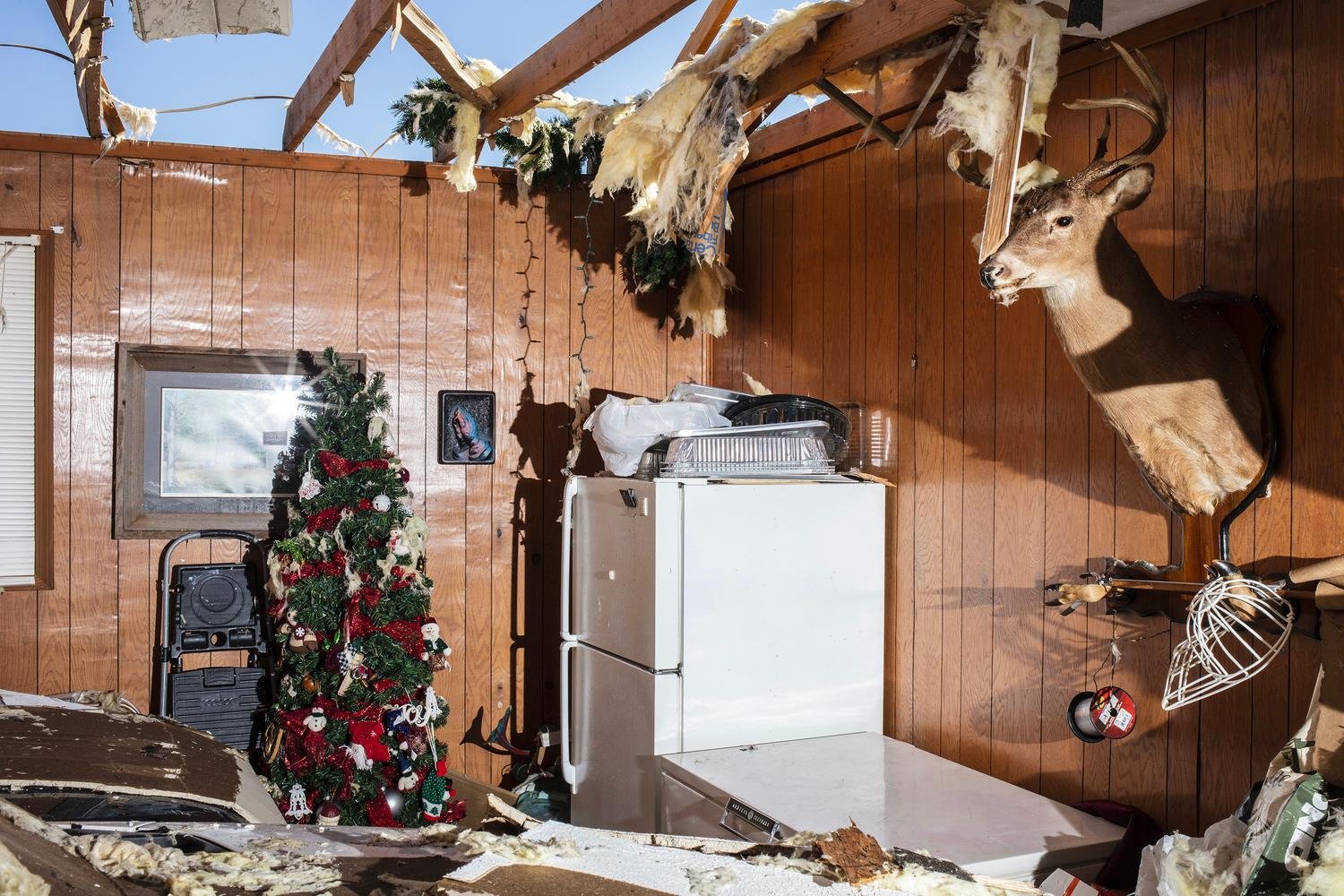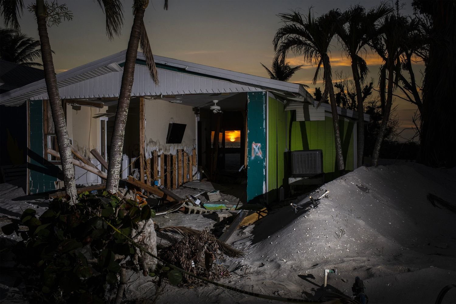 Sound the Sirens encompasses the long-term effects that climate disasters have on communities across the United States, with tens of thousands of people left homeless and displaced while trying to rebuild their lives. Despite decades of warnings by climate scientists about the impact of rising temperatures on the stability of our planet, climate data is now broadly ignored in the service of capital and convenience, while risking the lives of hundreds of millions of people. Folded between the book pages, underlying images of solar flares with orange hues leak out from within.