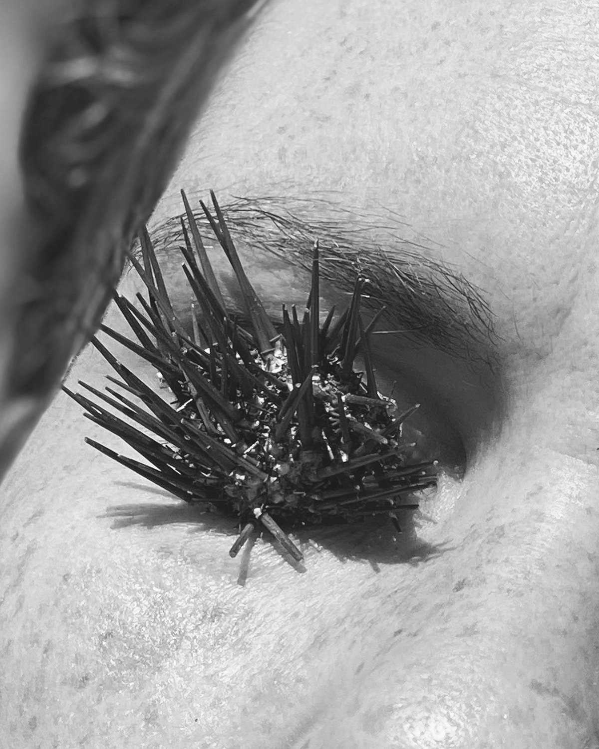 The birth of a child is like chasing disconcerting hours. It’s a cathartic event, a transitional moment. But sometimes the cathartic expectation chokes with a cracking sound. Faceless medical white coats act out empty medical words, made of hope and resignation. Each and every family history preserves their own. In a summer night of 1989, Chiara Hernandez was stillborn after childbirth. She was like that for five long minutes. The most rhetoric, shocking narration would spend some words embellishing the grief of a mother, It would linger on the frantic father’s powerlessness, on the doctors’ frenzy and their search of a small rationalistic miracle as priests of a rationalistic cult. And on the relief of that first breath. But it would neglect the fundamental protagonist, the newly born baby, as if her unripe emotional state could make her immune from the changes in a still unknown world, which let her keep waiting on the threshold for five interminable minutes. Still Birth is not only a book, it’s the result of a visual imprinting, of a limbo that left a scar on a child’s subconscious mind. She decided to wait on the other side before staking her claim to exist. These pages try to rebuild the whole of an almost thirty-year old woman, who doesn’t remember that child but feels an earthy energy flowing through her. The one that the Spanish call Duende and Garcia Lorca described like that: “The Duende belongs to a few people. It’s the energy of the Earth. It is known to burn your blood like a tropic made of glass, which is consuming or rejecting the sweet geometry we were taught. It disrupts the styles we know; it leans on human overwhelming sorrow.” In this restlessness Still Birth took shape. From the first narrational foundations, inhabited by motionless landscapes, by rocky panoramas- by the Duende, indeed, that in those five minutes nested inside her- Chiara Ernandes has continued her ceaseless wandering. In those suspended landscapes, another narration found roots, the one of her Inner Self. Still Birth has become the reconstruction of her past, starting from an epicentre, her Non-Birth, to get to understand herself and her imagery. Family objects, archive images, suggestive and poetic symbolism, her birth’s medical records, all these instruments contribute to expanding those five minutes, turning them into a fundamental narrative starting point, around which all the author’s existence is revolving. Her existence is also defined by the ceaseless search of her own image. Chiara Ernandes lingers on her face and its very details, as if she were trying to claim it as her own, as if she felt it didn’t really belong to her. She also takes obsessive pictures of it, comparing it with her parents’, melting it into light. Until her countenance becomes a mask, carved in chalk, turning it into an effigy, a sculpture immune to the passage of time. To create a mask with one’s own features can evoke ancestral, hazy traditions. But Chiara Ernandes’s mask is not a funerary one, it’s an utterly changed butterfly’s legacy while leaving its cocoon. Perhaps this is the deep value of Still Birth. Before being a poetical search of Chiara’s past, of the celebration to walk on the earth, it’s the end of a journey. It’s a rite of passage where the author collects and condense her being while expanding and absorbing it. In this way she’s getting ready to walk on.