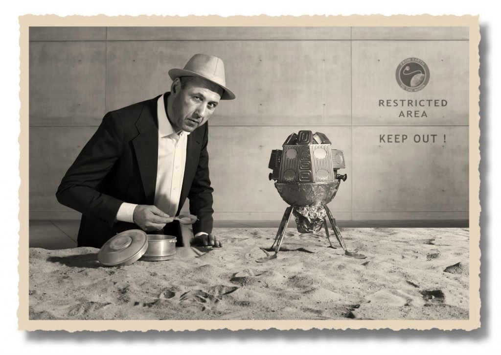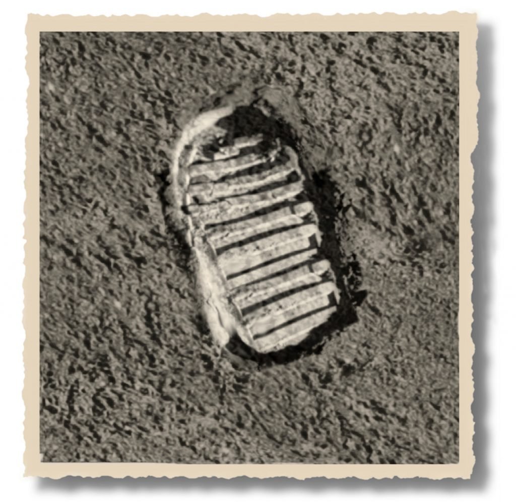 Et voilà – a picture of the footprint of the first man on the Moon. Due to the secrecy of the project, he told the digger operator that the photos were for a rubber boots commercial.