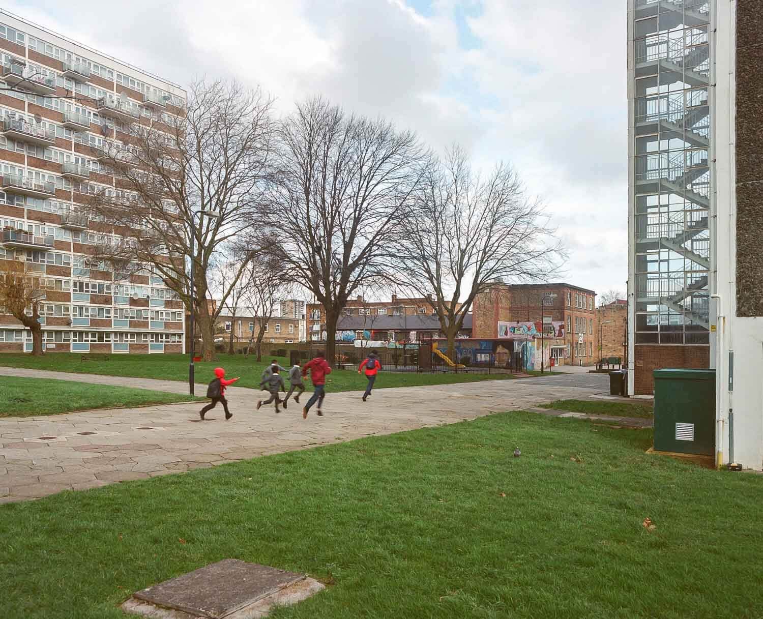 Utopia Ending investigates the transformation of London after the 2012 Olympics and includes photographs taken between 2014 and 2019. Investments in social housing have been almost entirely eroded and the new buildings, which replace council houses as part of huge “regeneration plans”, are financial assets for global investors, rather than homes for Londoners.