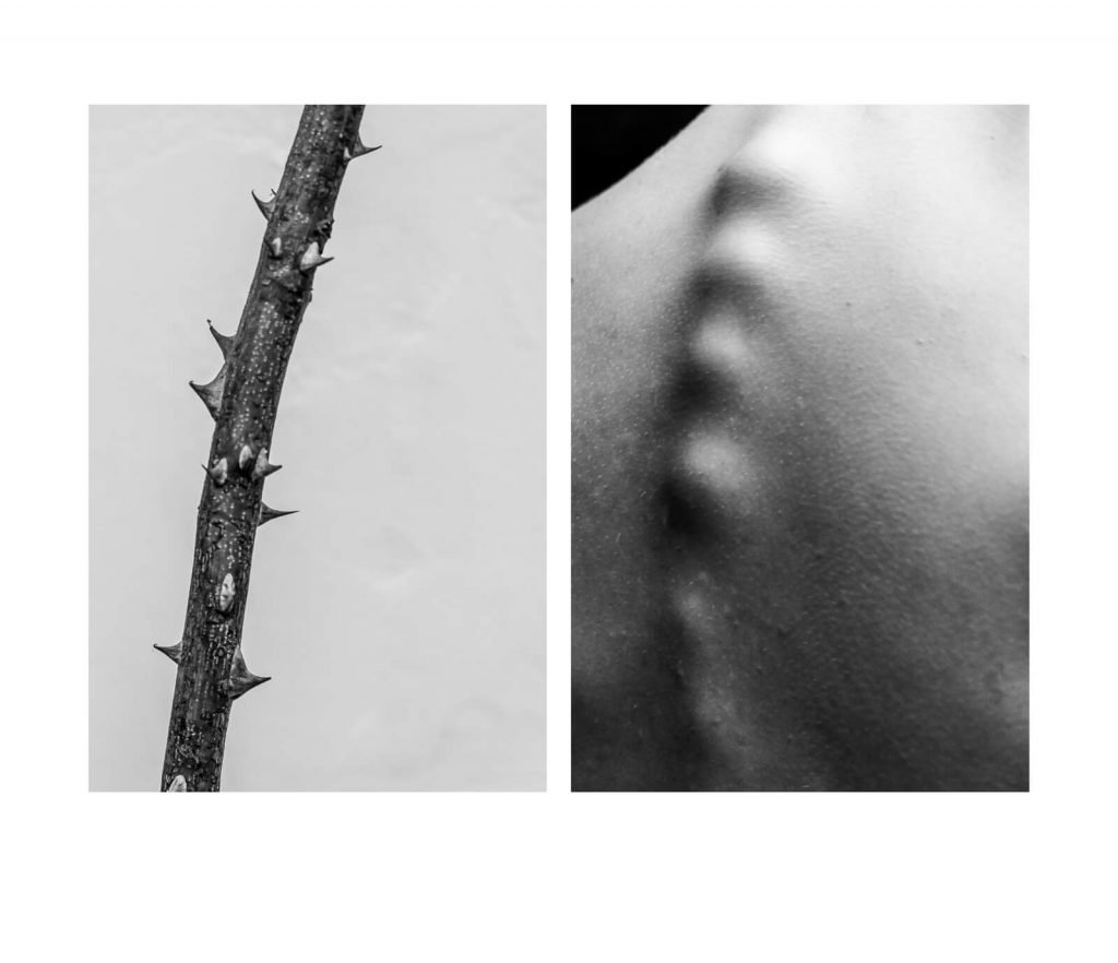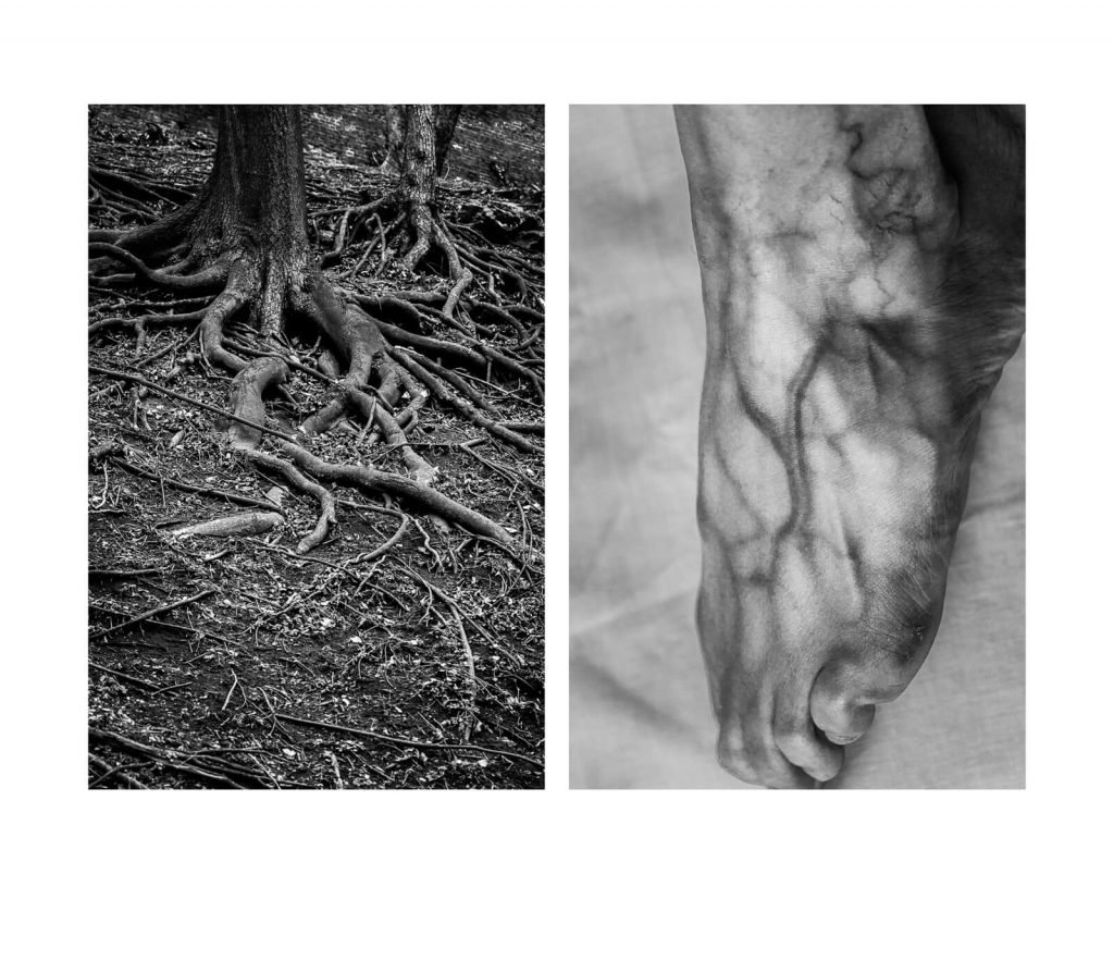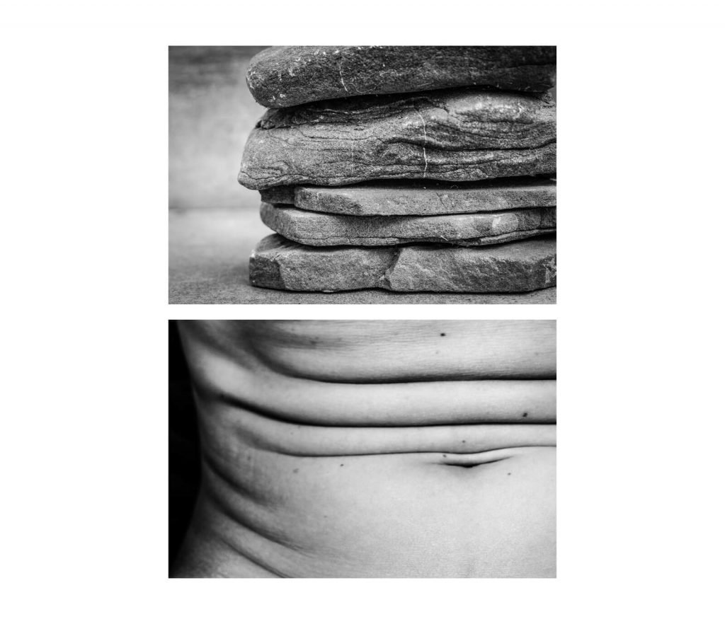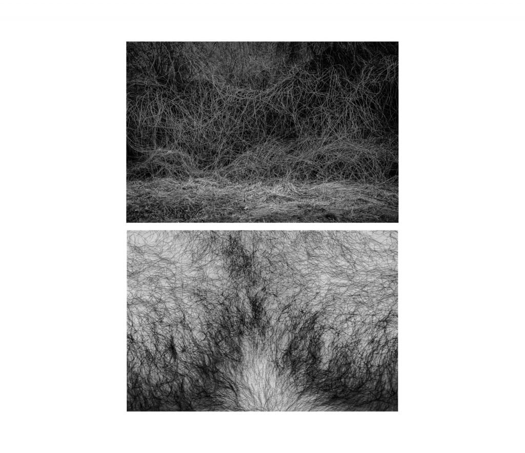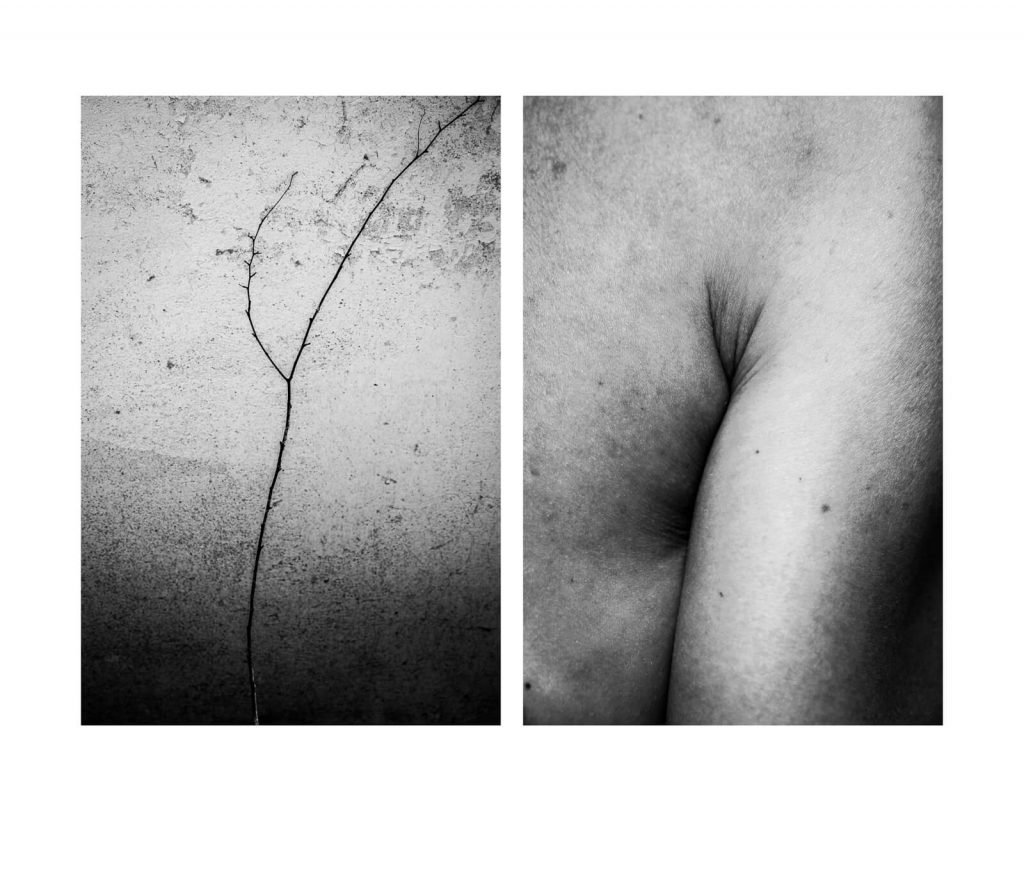 By re-tracing the unity of formal elements, compositions, lines and shapes in the form of diptychs, the inter-relation of the human body and nature becomes apparent.