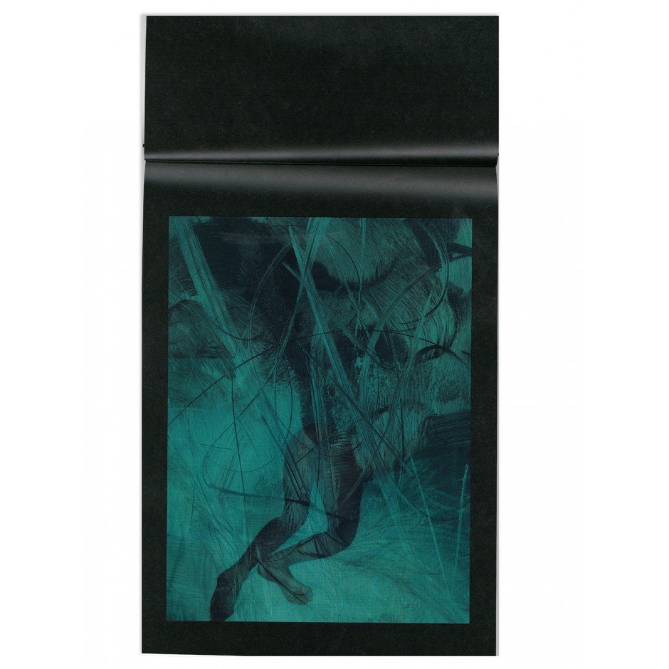 Women’s bodies buried under fingerprints, brushstrokes encapsulating a breast or encircling a silhouette, enigmatic images appear on the screen. A dreamlike gallery of trails and traces reveals a sort of tension between the tangible and the intangible. Reenacting the pure tactile pleasure of scrolling, fondling and stroking the pixels, this velvet-covered volume brings the reader beyond the digital skin of the image.
